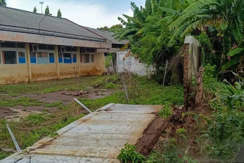 Pagar tembok SMPN 1 Banyuglugur, Situbondo, Jawa Timur, ambruk diterjang banjir bandang. Sabtu (24/1/2026) ANTARA/Novi Husdinariyanto.