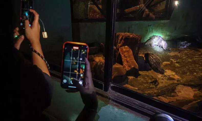 Arsip foto - Pengunjung mendokumentasikan landak Jawa (Hystrix javanica) saat wisata malam di Taman Margasatwa Ragunan, Jakarta, Sabtu (11/10/2025). Unit Pengelola Taman Margasatwa Ragunan (UPTMR) resmi membuka wisata malam bertajuk Night at the Ragunan Zoo untuk memperluas akses edukasi satwa bagi masyarakat, terutama pelajar dan komunitas, serta memberikan alternatif hiburan keluarga di malam hari. ANTARA FOTO/Yulius Satria Wijaya/nym.