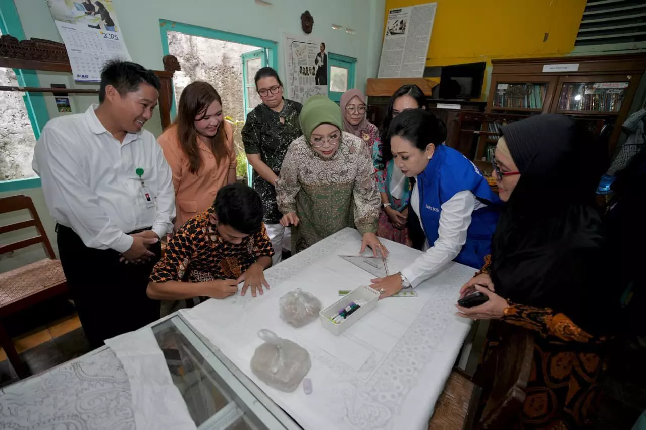 Fatma Saifullah Yusuf, istri Mensos Gus Ipul mengunjungi Batik Mahkota dan Batik Toeli Laweyan, serta mengunjungi Sekolah Luar Biasa (SLB) Autis Alamanda, di Solo, Minggu (26/10/2025)