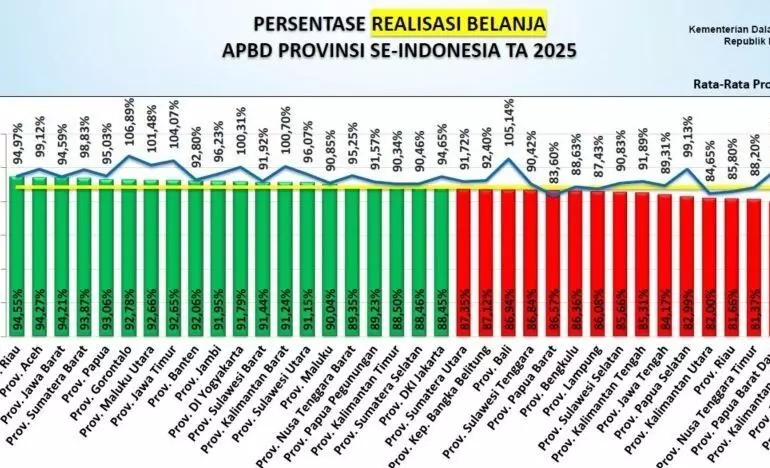 Pemerintah Provinsi (Pemprov) Gorontalo mampu tampil dalam deretan 10 besar tertinggi realisasi belanja Anggaran Pendapatan Belanja Daerah (APBD) Tahun Anggaran 2025.