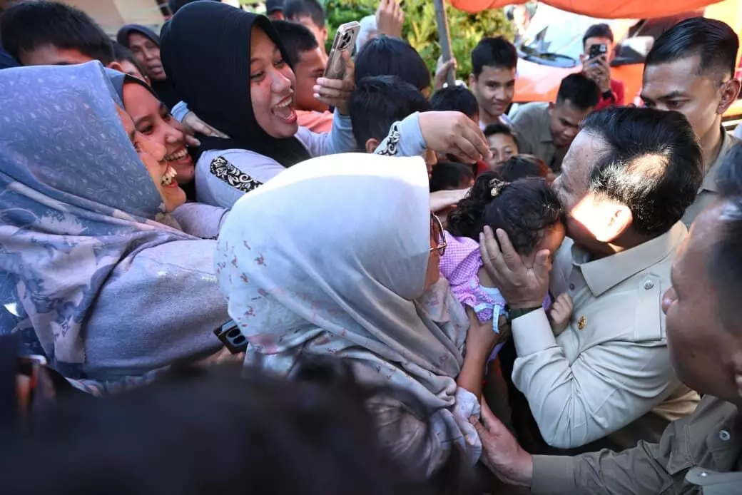 Presiden Prabowo Subianto berdialog dengan pengungsi banjir di Padang Pariaman, Sumbar didampingi Mensos Gus Ipul, Senin (1/12/2025)