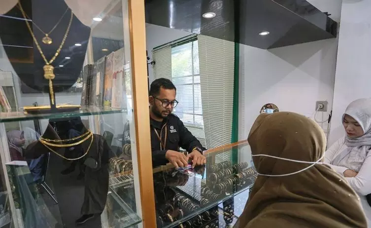 Ilustrasi - Pramuniaga melayani pembeli emas di Galeri 24 Pegadaian Area Aceh, Banda Aceh, Aceh, Kamis (17/4/2025). ANTARA FOTO/Khalis Surry/nym/pri.