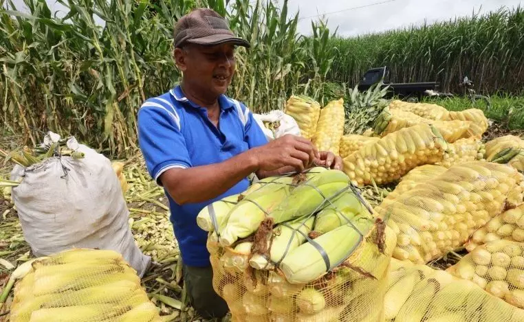 Arsip foto. Buruh tani mengemas jagung manis dalam karung saat panen di Desa Tempurejo, Kabupaten Kediri, Jawa Timur, Minggu (18/1/2026). Sejumlah petani tebu di daerah tersebut beralih menanam jagung manis karena harga jual stabil pada kisaran Rp3.300 per kilogram dengan waktu panen lebih cepat yaitu 3 bulan dibandingkan tebu yang membutuhkan waktu panen 10 bulan. ANTARA FOTO/Prasetia Fauzani/rwa.