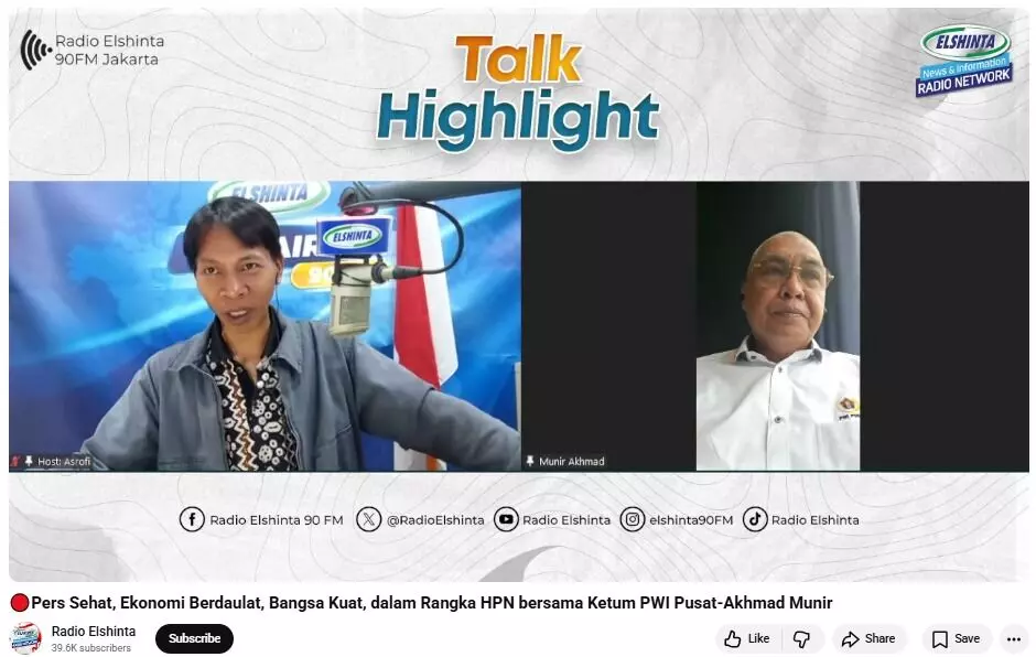Peringatan tersebut disampaikan Munir dalam wawancara Radio Elshinta, Talk Highlight, Sabtu (07/02/2026), bertepatan dengan momentum peringatan Hari Pers Nasional.
