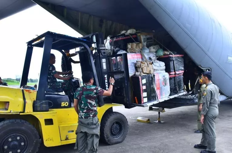 "Pesawat ini turut membawa bahan pangan untuk memenuhi kebutuhan dasar masyarakat terdampak," jelas dia.