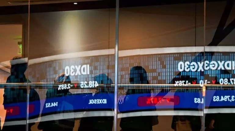 Pekerja berjalan melewati refleksi layar digital pergerakan Indeks Harga Saham Gabungan (IHSG) di Bursa Efek Indonesia, Jakarta. ANTARA FOTO/Sulthony Hasanuddin/nz.