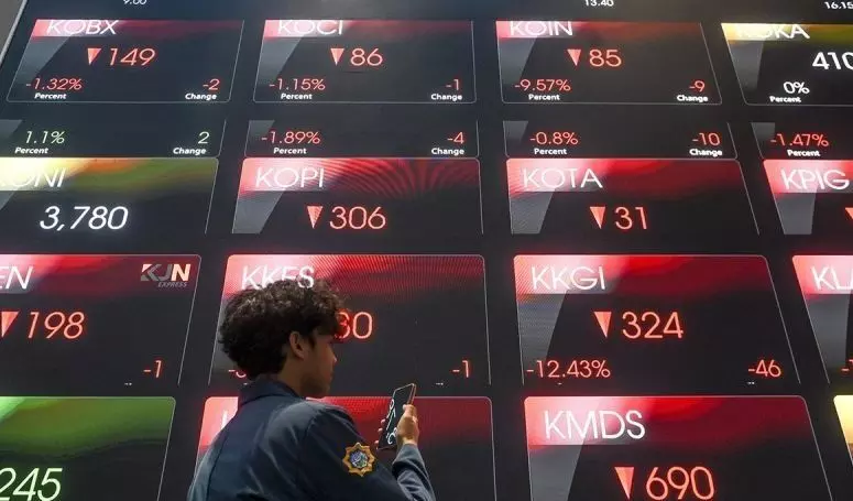 Pengunjung melihat layar yang menampilkan pergerakan harga saham di Bursa Efek Indonesia, Jakarta, Senin (27/10/2025). ANTARA FOTO/Hafidz Mubarak A/agr/am.