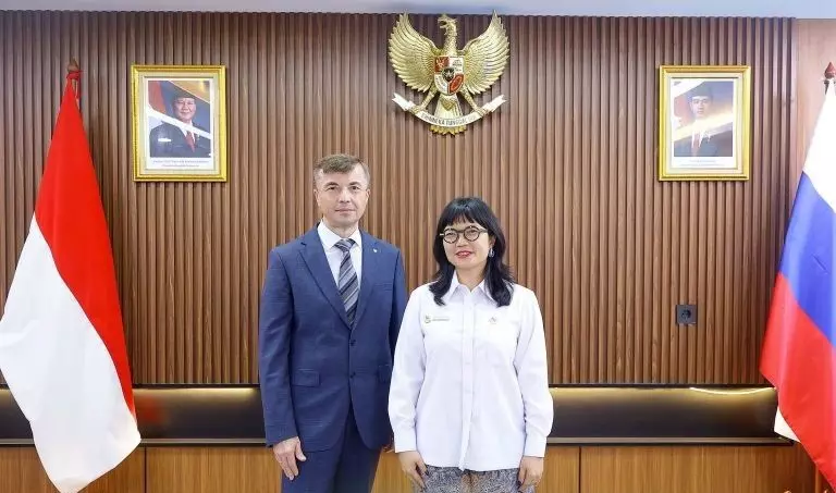 Duta Besar Federasi Rusia untuk Indonesia Sergei Tolchenov (kiri) dan Wakil Menteri Pendidikan Tinggi, Sains dan Teknologi (Wamendiktisaintek) Stella Christie (kanan) dalam pertemuan di Jakarta, Senin (22/12/2025). ANTARA/HO-Kemdiktisaintek