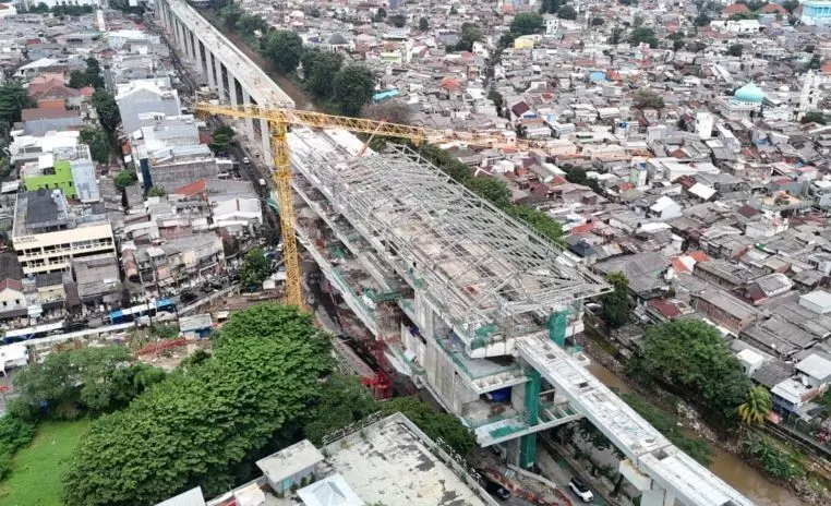Pembangunan jalur LRT Jakarta Fase 1B yang menghubungkan Stasiun Velodrome menuju Stasiun Manggarai, Jakarta Selatan. (ANTARA/HO-Jakpro).