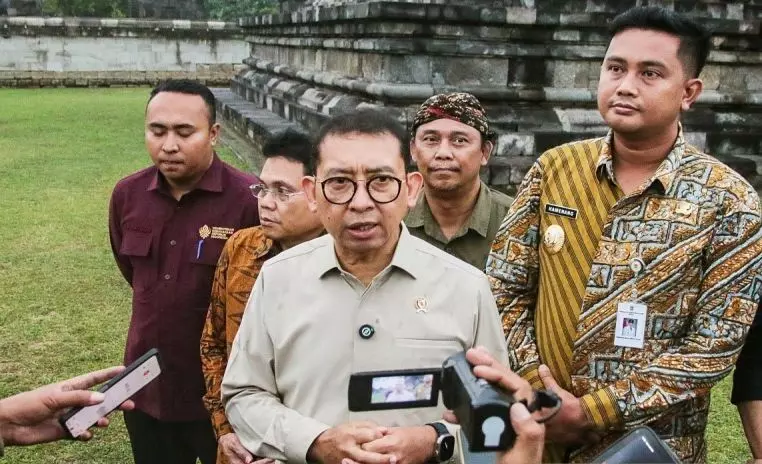 Menteri Kebudayaan Fadli Zon memberikan keterangan kepada wartawan usai peletakan batu pertama pengembangan Situs Candi Plaosan di Klaten, Jawa Tengah, Kamis (23/10/2025). ANTARA/Rahid Putra Laksana/aa.