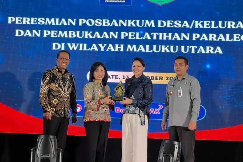 Kementerian Hukum (Kemenkum) menetapkan Gubernur Maluku Utara Sherly Tjoanda menjadi Duta Pos Bantuan Hukum (Posbankum) se-Indonesia, dalam kegiatan Peresmian Posbankum di Maluku Utara, Ternate, Senin.