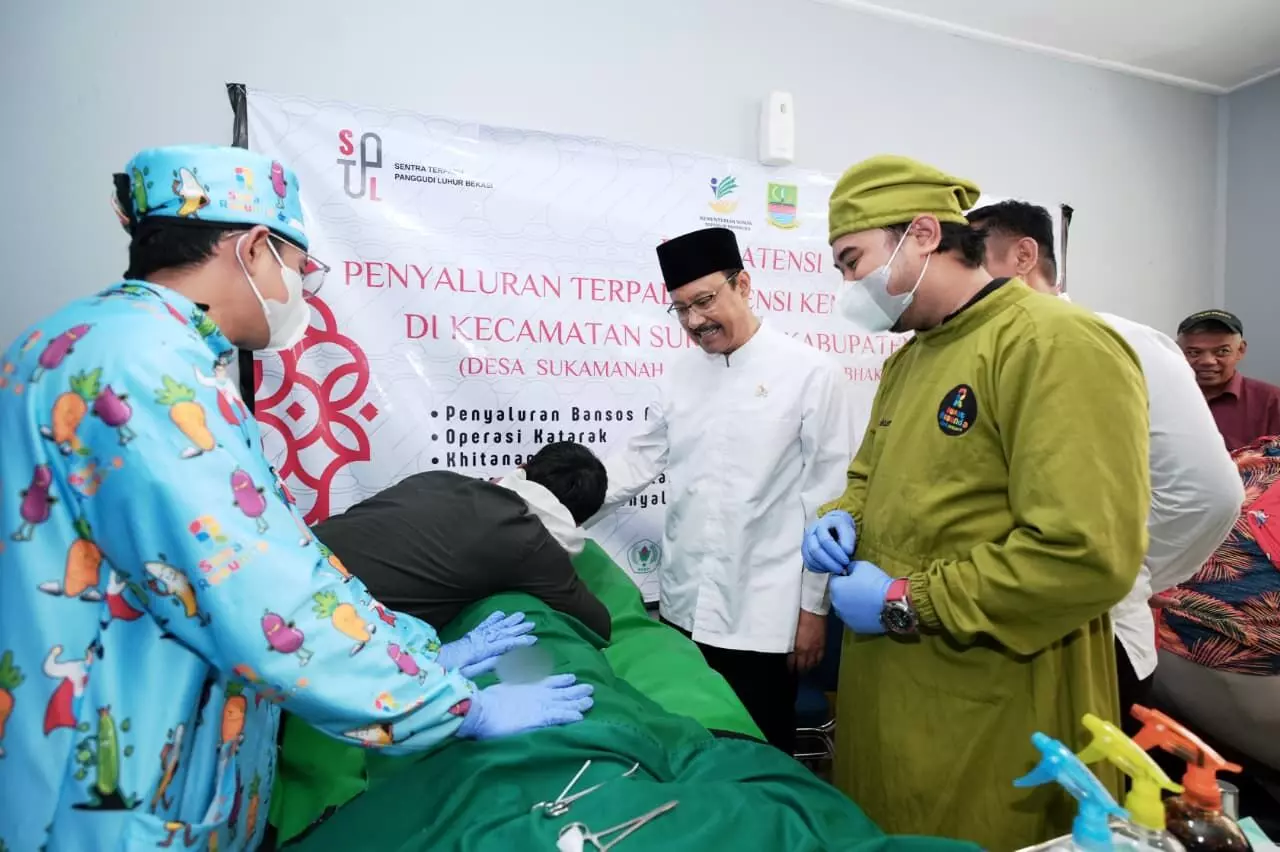 Kegiatan ini merupakan kolaborasi Kemensos melalui Sentra Terpadu Pangudi Luhur (STPL) Bekasi bersama Pemkab Bekasi, Yayasan Pundi Amal Peduli Kasih (YPP), RS Bhakti Husada Cikarang, dan Klinik Pratama Sunat Rusunda. Penyaluran bantuan juga dilakukan di Desa Sukamana dan Desa Sukaasih.