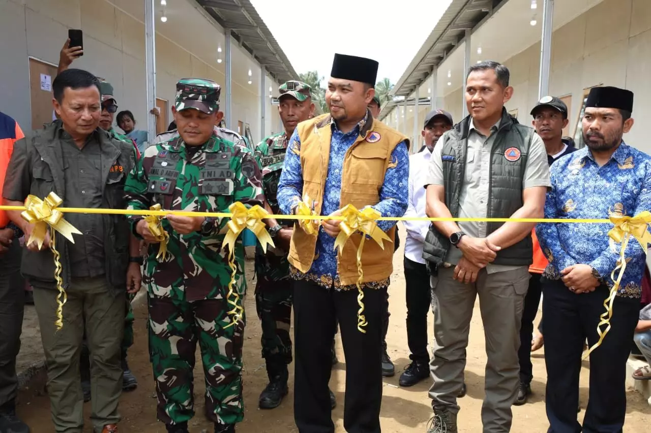 Peresmian huntara di Gampong Ulee Rubek Timu, Kecamatan Seunuddon, Kabupaten Aceh Utara, Provinsi Aceh, oleh BNPB, Kamis (5/2/2026)