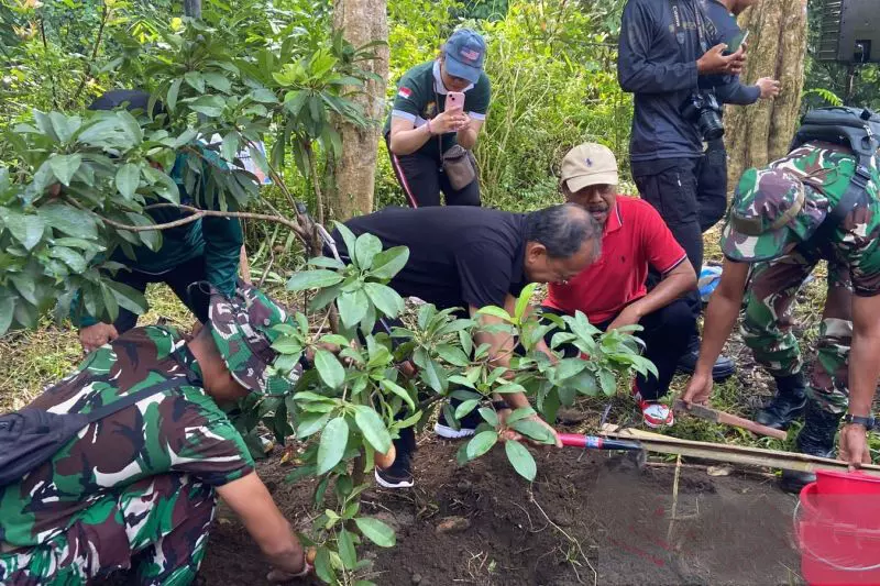 “Totalnya 35 ribu lebih bibit di seluruh Bali, saya tanam pohon sawo karena nanti bisa dipetik, daunnya hijau bagus, menghasilkan oksigen banyak, dan menyerap karbon, tanamnya di sini karena ada sumber air harus dijaga hutannya supaya tidak mengalami kekeringan,” ujar Koster usai menanam di DAS Tukad Ayung, Bongkasa.