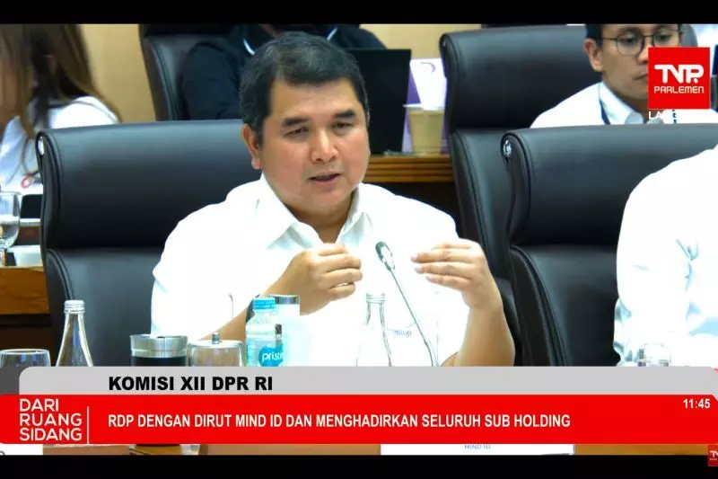 Tangkapan layar - Direktur Utama (Dirut) Mining Industry Indonesia (MIND ID) Hendi Prio Santoso dalam Rapat Dengar Pendapat (RDP) dengan Komisi XII DPR RI di Jakarta, Rabu (4/12/2024). ANTARA/M. Baqir Idrus Alatas (Muhammad Baqir Idrus Alatas)