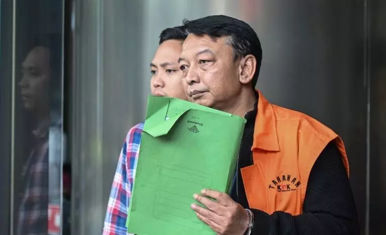 Tersangka kasus dugaan korupsi sengketa lahan I Wayan Eka Mariarta (kanan) berjalan menuju mobil tahanan usai pemeriksaan lanjutan di Gedung Merah Putih KPK, Jakarta, Kamis (12/3/2026). Mantan Ketua Pengadilan Negeri Depok tersebut menjalani pemeriksaan lanjutan terkait kasus dugaan korupsi pengurusan sengketa lahan di PN Depok dengan barang bukti uang tunai senilai Rp850 juta. ANTARA FOTO/Sulthony Hasanuddin/bar