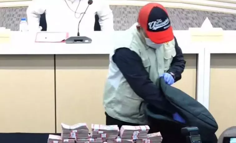 “Jadi, ini ada tren berbeda ya. Beberapa waktu yang lalu ada yang pakai karung kan uangnya nih, kemarin ditaruh di kardus, dan yang ini di dalam tas ransel,” katanya.