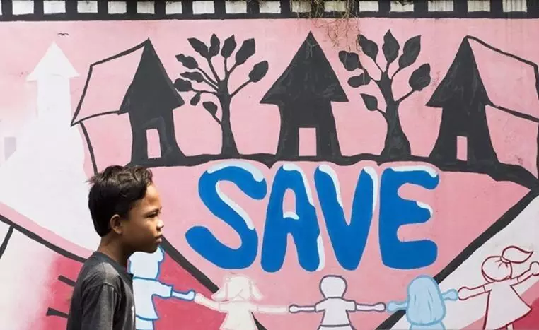 Ilustrasi - Seorang anak melintas dekat graffiti "save anak" sebagai bagian dari kampanye perlindungan pada anak di Jakarta. (ANTARA FOTO/M Agung Rajasa