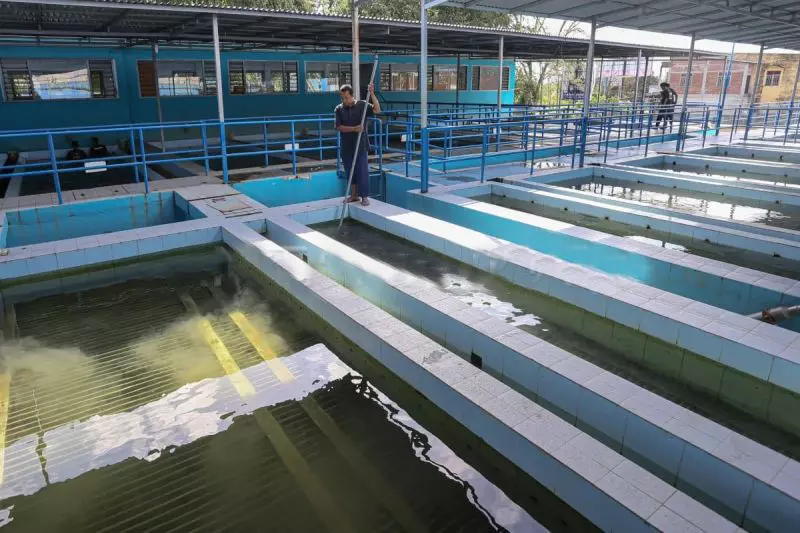 Ilustrasi - Petugas Perusahaan Daerah Air Minum (PDAM) Banda Aceh membersihkan bak penampungan air bersih yang akan disalurkan ke masyarakat di Lambaro, Aceh Besar, Aceh, Jumat (17/1/2025). ANTARA FOTO/Khalis Surry.