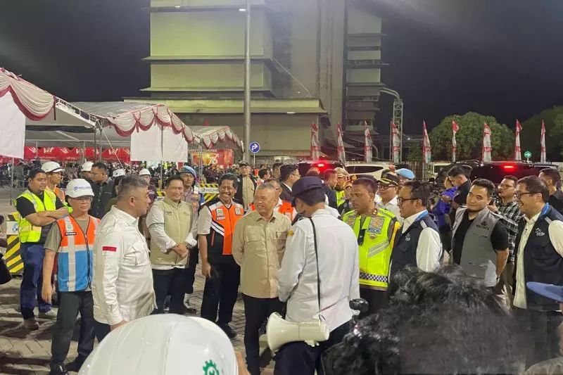 Menteri Perhubungan (Menhub) RI Dudy Purwagandhi saat meninjau arus mudik di Pelabuhan Ciwandan, Kota Cilegon, Banten, Rabu (18/3/2026) dini hari. (ANTARA/Desi Purnama Sari).