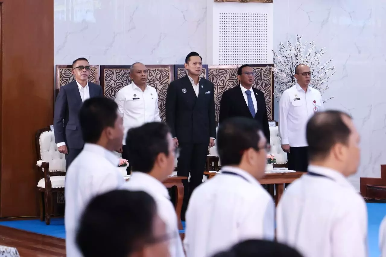 Menko AHY didampingi Deputi Koordinasi Pemerataan Pembangunan Wilayah Nazib Faizal, Staf Khusus Agust Jovan Latuconsina, Sigit Raditya, Irjen Pol. Arif Rachman, dan Brigjen Rio Neswan.