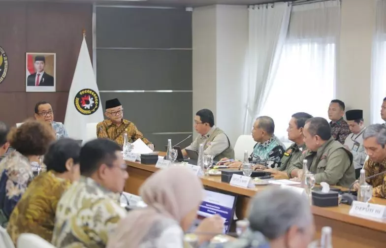 Menko PMK Pratikno memimpin rapat tingkat menteri membahas terkait keamanan infrastruktur bangunan pendidikan-pondk pesantren, bersama Menteri Agama Nasaruddin Umar, Menteri Pekerjaan Umum Dody Hanggodo, Menteri Pendidikan dasar dan Menengah (Dikdasmen) Abdul Mu'ti, dan Kepala BNPB Suharyanto, Kepala Basarnas Mohammad Syafii, di Kantor Kemenko PMK, Jakarta, Jumat (10/10/2025). ANTARA/HO-BNPB