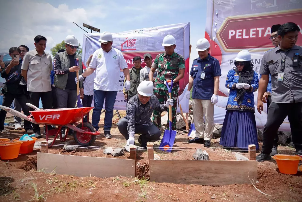 Peletakan batu pertama oleh Menteri Koperasi (Menkop) Ferry Juliantono di kawasan Stadion Pakansari, Bogor, Sabtu (29/11/2025)