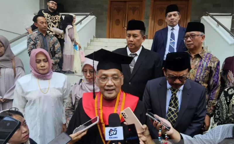 Menteri Haji dan Umrah Mochamad Irfan Yusuf atau Gus Irfan memberikan keterangan seusai mengikuti prosesi wisuda di Universitas Islam Negeri (UIN) Maulana Malik Ibrahim, di Kota Malang, Jawa Timur, Sabtu (4/10/2025). ANTARA/Ananto Pradana