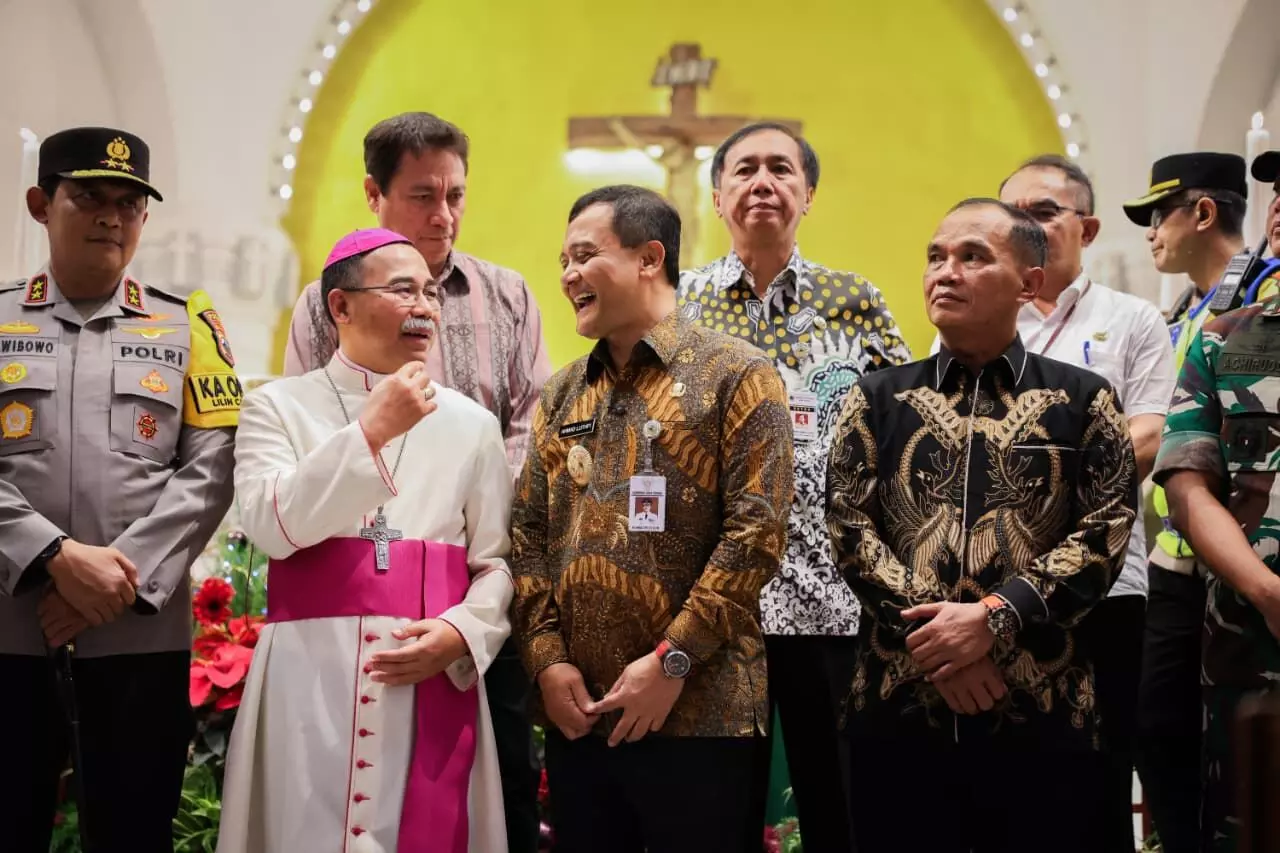 Gubernur Jateng Ahmad Luthfi datang ke Gereja Katedral beserta rombongan pimpinan daerah Jateng seperti Kapolda Jateng Irjen Pol Ribut Hari Wibowo, Pangdam IV/Diponegoro Mayjen TNI Achiruddin Darojat, Ketua DPRD Jateng Sumanto, Kajati Jateng Hendro Dewanto, serta perwakilan Kabinda Jateng dan lainnya. Rombongan tiba sebelum misa dimulai.