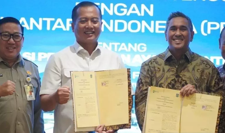 Penandatanganan MoU dilakukan oleh Gubernur NTB Lalu Muhamad Iqbal bersama Direktur Utama ID Food Ghimoyo, disaksikan oleh Dirjen Peternakan dan Kesehatan Hewan Kementerian Pertanian RI Agung Suganda di Gedung PT Rajawali Nusantara Indonesia, Jakarta, Senin (9/3/2026).