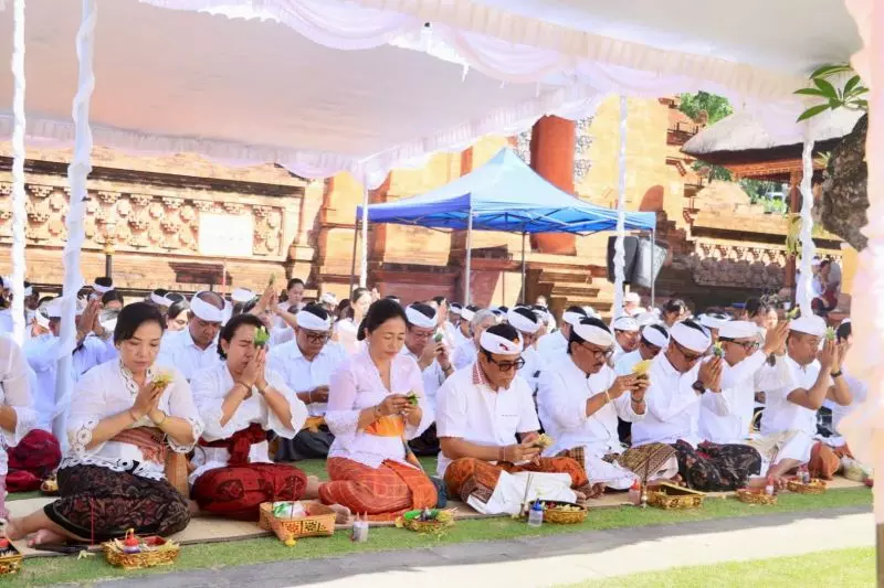 Persembahyangan yang dipuput oleh Ida Pedanda Gede Putra Tunjung Kuning dari Griya Bungsu Tunjung Kuning, Pemogan, dihadiri langsung oleh Wali Kota Denpasar I Gusti Ngurah Jaya Negara bersama jajaran Forum Koordinasi Pimpinan Daerah (Forkopimda) Kota Denpasar.