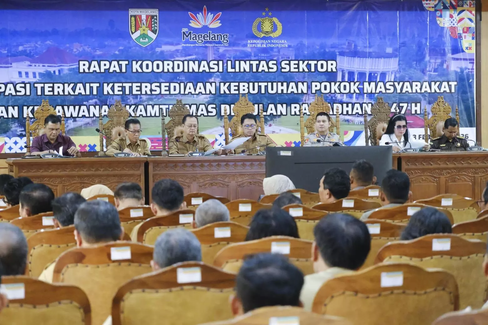 Upaya tersebut ditegaskan dalam Rapat Koordinasi Lintas Sektor Antisipasi Ketersediaan Kebutuhan Pokok dan Kerawanan Kamtibmas Ramadan 1447 H yang digelar di Aula Adipura Kencana, Kota Magelang, kemarin.