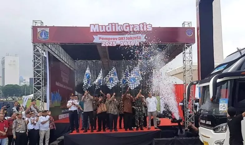 Pemberangkatan peserta mudik gratis pada 17 Maret 2026 di kawasan Monumen Nasional (Monas), lalu untuk sepeda motor pada 16 Maret 2026 di Terminal Pulogadung.