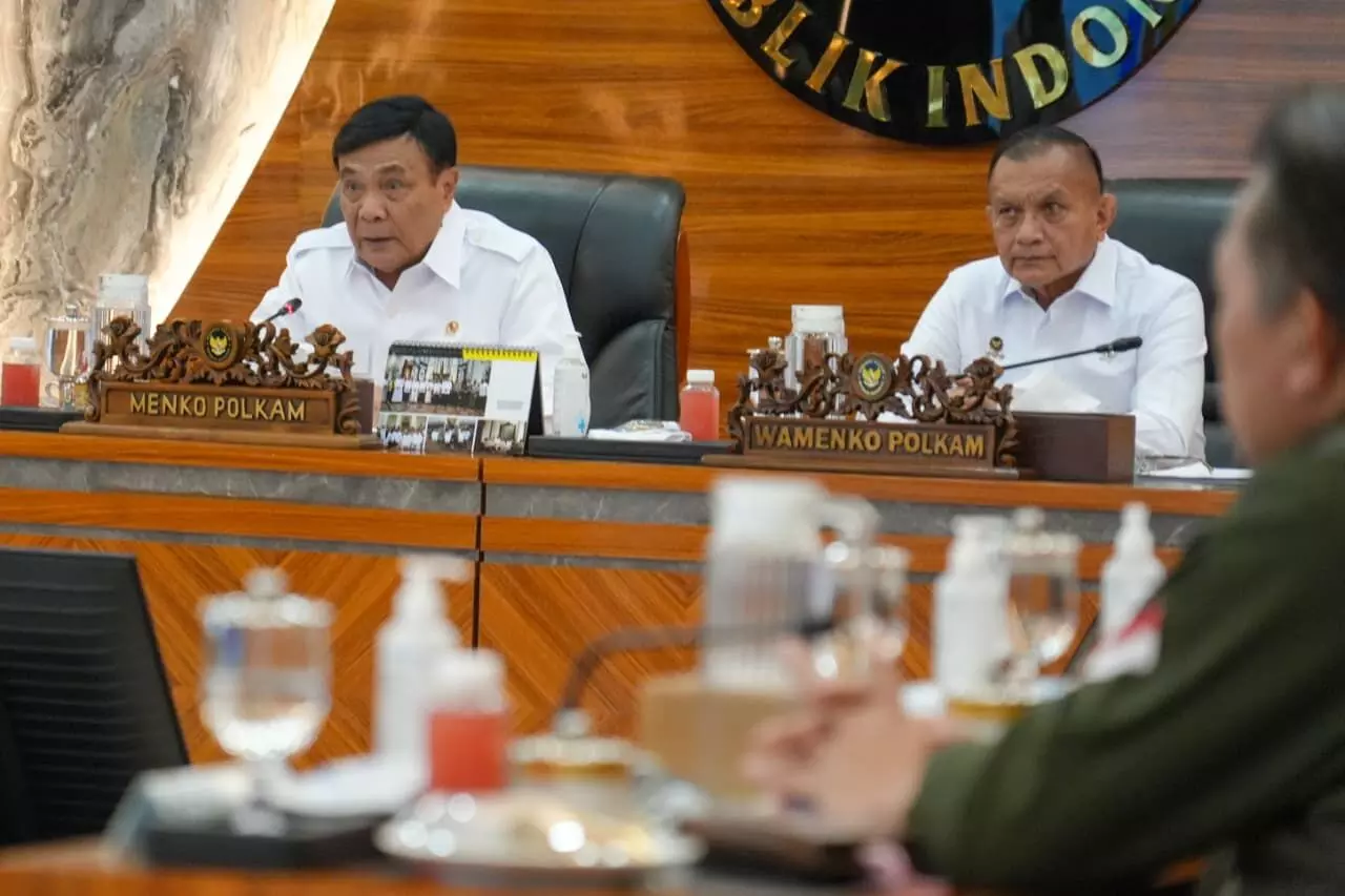 Menko Polkam Djamari Chaniago memimpin rakor Persiapan Pengamanan Natal 2025 dan Tahun Baru 2026, Selasa (23/12/2025)