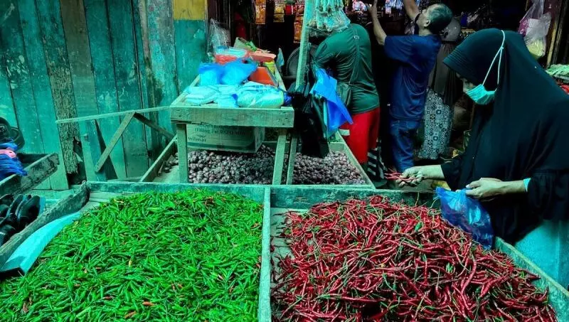 Arsip - Seorang pembeli hendak membeli cabai di Pasar Pagi Kuala Simpang di Kabupaten Aceh Tamiang, Provinsi Aceh, Sabtu (24/1/2026). ANTARA/Harianto