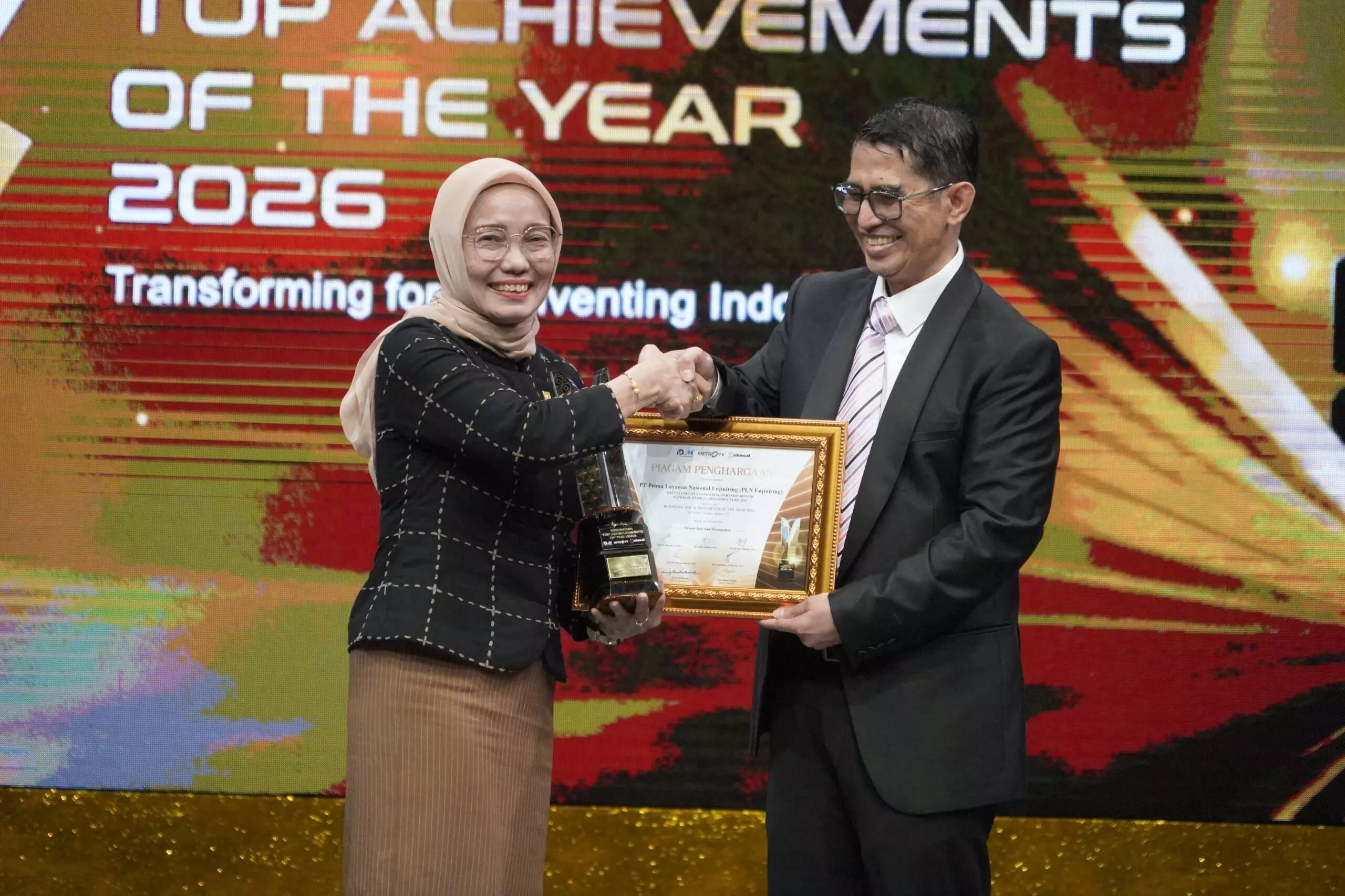 Komitmen terhadap transformasi engineering dan penguatan infrastruktur ketenagalistrikan nasional mengantarkan PLN Enjiniring meraih dua penghargaan bergengsi dalam ajang Indonesia Top Achievements of the Year (ITAY) 2026 yang digelar di Grand Studio Metro TV.