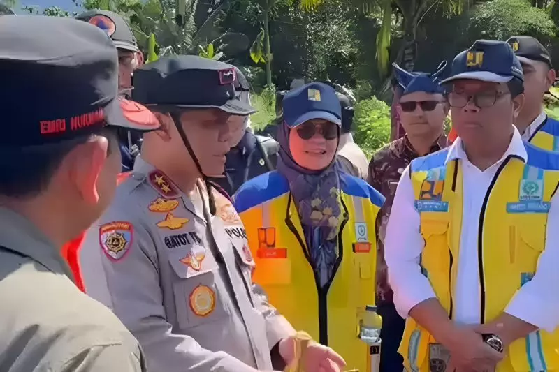 Kapolda Sumatera Barat Irjen Pol. Gatot Tri Suryanta (kedua kiri) berdiskusi dengan jajaran Balai Wilayah Sungai (BWS) Sumatera V mengenai pembuatan sumur bor di Sumatera Barat pada Minggu (21/12/2025). (ANTARA/HO-Divisi Humas Polri).