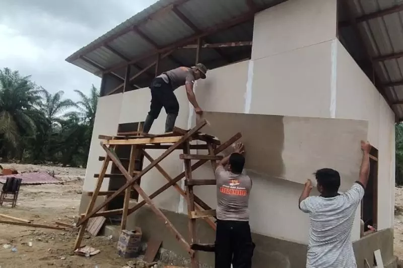 "Pembangunan ini dilakukan bersama prajurit TNI dan masyarakat sebagai wujud kepedulian terhadap warga yang terdampak bencana," ujar Kepala Bidang Humas Polda Sumatera Utara Kombes Pol Ferry Walintukan di Medan, Minggu.