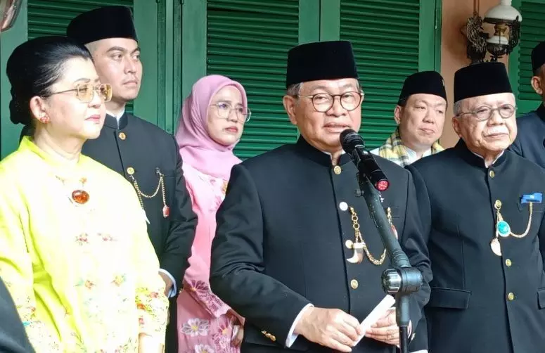 Gubernur DKI Jakarta Pramono Anung (tengah) Wibowo dalam perayaan Lebaran Betawi 2026 di Lapangan Banteng, Jakarta Pusat, Sabtu (11/4/2026). (ANTARA/Siti Nurhaliza