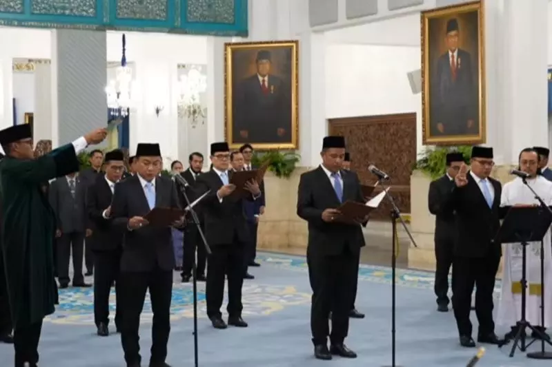 Pembacaan sumpah/janji jabatan anggota Ombudsman RI 2026-2031 di Istana Negara, Jakarta, Jumat (10/4/2026). ANTARA/Maria Cicilia Galuh