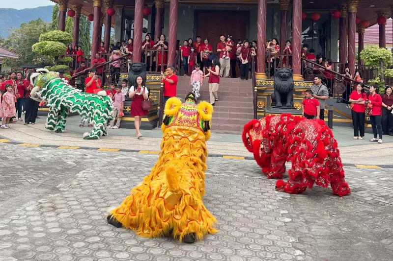Atraksi Barongsai memeriahkan perayaan Tahun Baru Imlek 2577 Kongzili di Vihara Karuna Dipa Palu, Selasa (17/2/2026). ANTARA/Nur Amalia Amir.