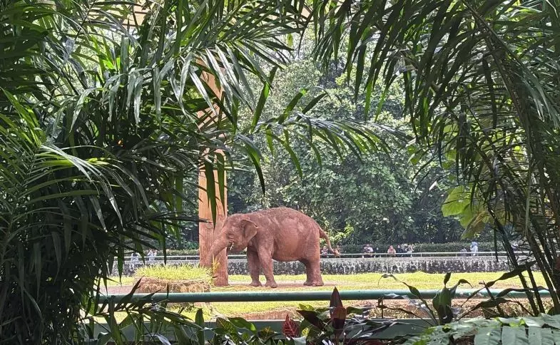 Seekor gajah yang berada di kawasan Taman Margasatwa Ragunan, Jakarta, Senin (23/3/2026). ANTARA/Sinta Ambar