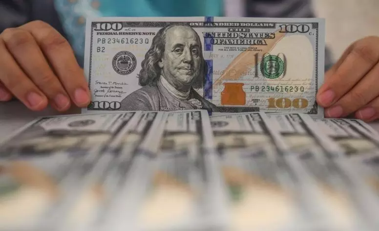 Pegawai menunjukan uang dolar AS di Bank Syariah Indonesia, Tangerang Selatan, Banten, Rabu (21/1/2026). ANTARA FOTO/Hafidz Mubarak A/wsj.