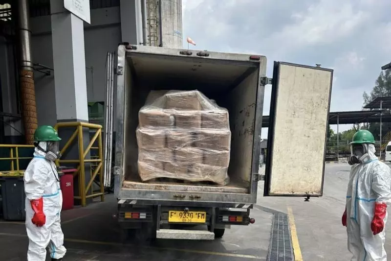 Dia menyampaikan pemusnahan dilakukan menggunakan insinerator pada suhu 800-900 derajat Celcius dilengkapi oleh Peralatan Pengendalian Emisi Udara dengan Continous Emission Monitoring System (CEMS). Abu hasil pembakaran ditangani melalui makro enkapsulasi dengan melakukan solidifikasi dalam kotak HDPE dan kemudian ditempatkan di lahan timbus atau landfill klas 1 yang dioperasikan oleh PT PPLI/DOWA.