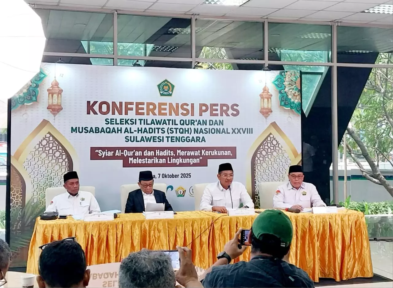 Panitia Seleksi Tilawatil Quran dan Musabaqah Al-Hadits Nasional ke-28 Kendari, gelar press conference, di Jakarta, Selasa (7/10/2025)