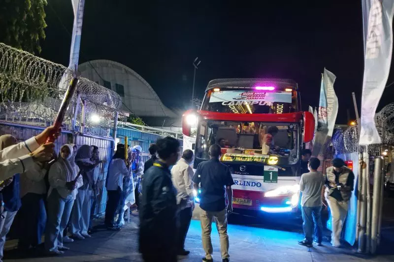 Suasana pelepasan 360 pemudik di kawasan Pelabuhan Makassar ke tiga wilayah tujuan di Sulawesi Selatan pada Senin malam (16/3/2026). ANTARA/Suriani Mappong
