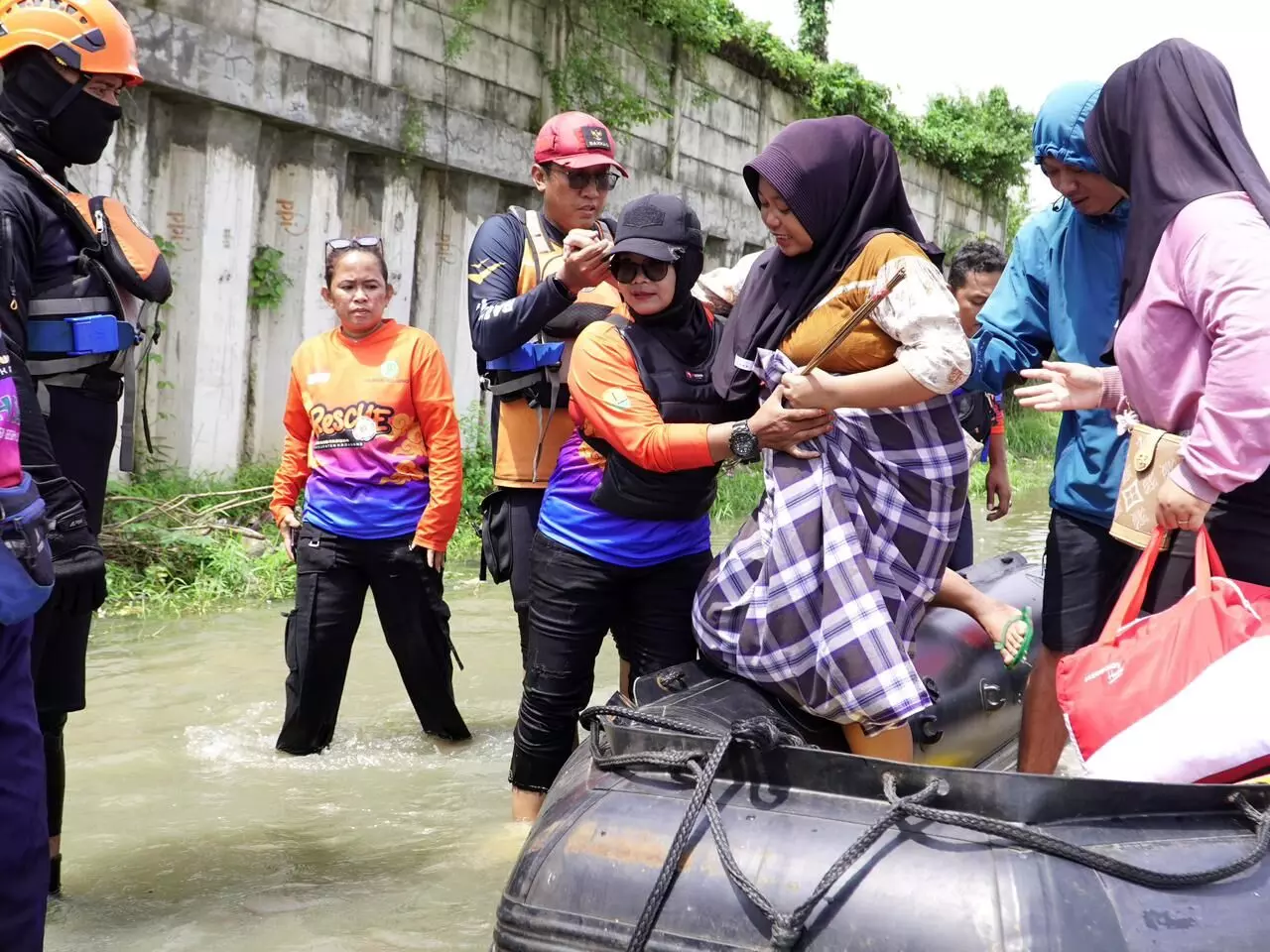 Badan Amil Zakat Nasional (BAZNAS) melalui tim BAZNAS Tanggap Bencana (BTB) membantu mengevakuasi ibu hamil yang hendak melahirkan dari lokasi banjir di Dusun Tegal Luhur, Desa Sukamakmur, Kec. Telukjambe Timur, Kab. Karawang.