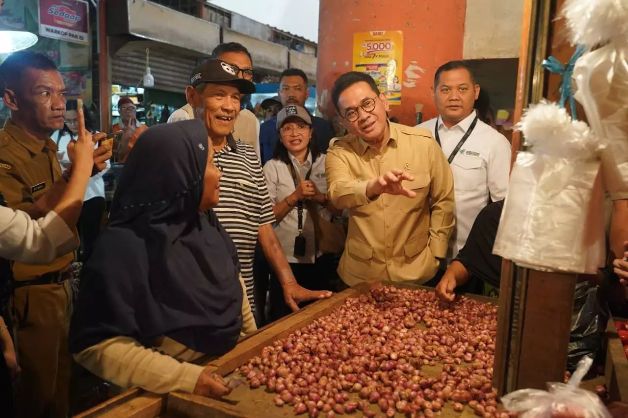 Menteri Perdagangan Budi Santoso melakukan peninjauan langsung terhadap harga dan pasokan barang kebutuhan pokok (bapok) di Pasar Raya Padang, Kota Padang, Sumatra Barat, pada Selasa, (18/11).