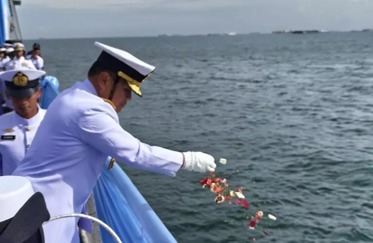 Jajaran TNI Angkatan Laut menggelar upacara tabur bunga di laut Teluk Jakarta dalam rangka memperingati Hari Pahlawan Nasional 2025, Senin. Dari pantauan kami di lokasi, upacara itu digelar di atas kapal perang KRI-320 Brawijaya yang dikirim langsung dari Komando Armada II, Surabaya.