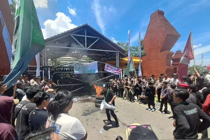 Selain itu, mahasiswa menyoroti masih banyak Organisasi Perangkat Daerah (OPD) yang diisi oleh pejabat pelaksana tugas (Plt) sehingga dianggap berpotensi menghambat pelayanan publik.